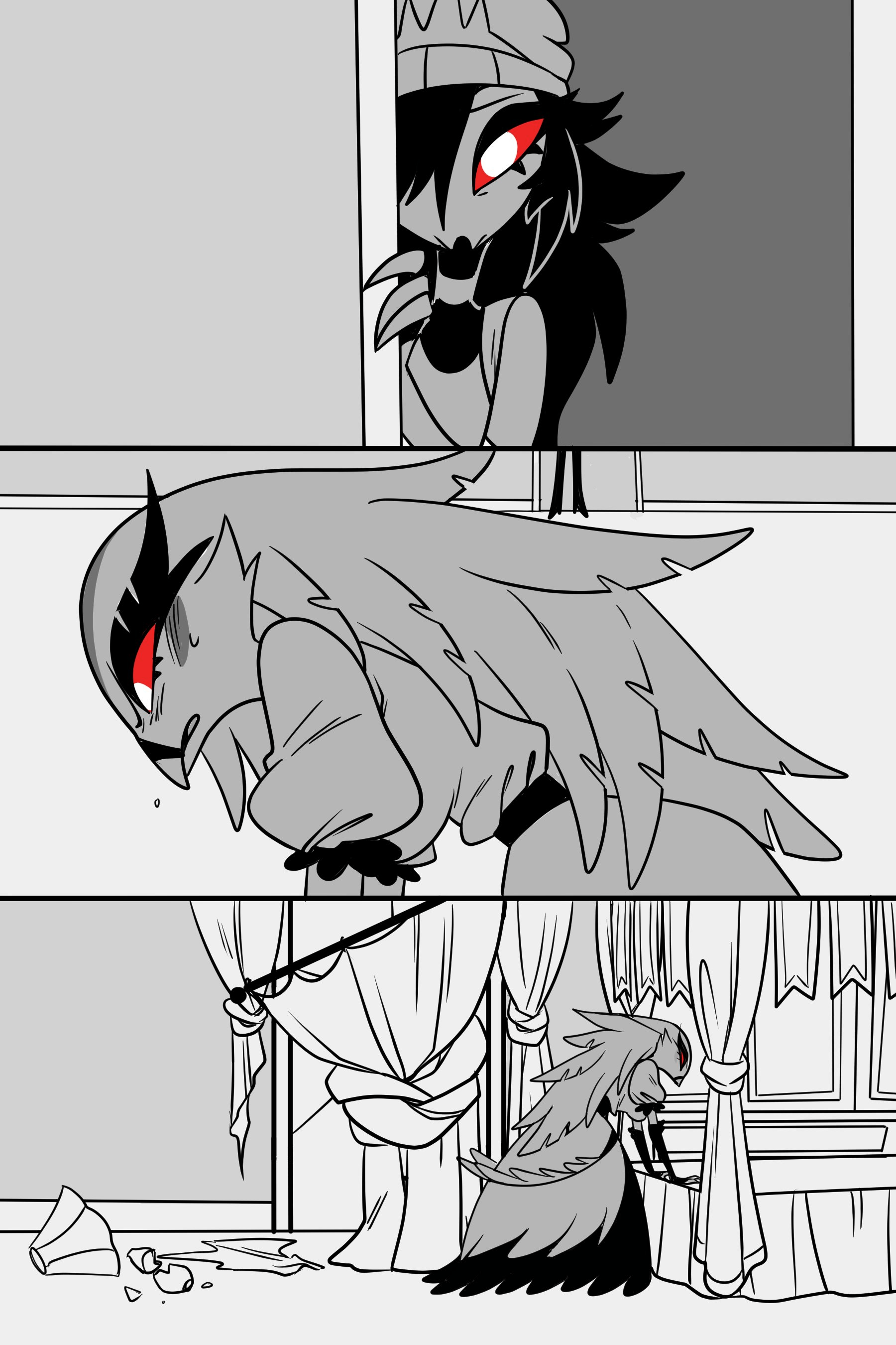 The scene of stolas attempting to confront his daughter about his reasons for his behavior. This scene is from Helluva boss which ...
